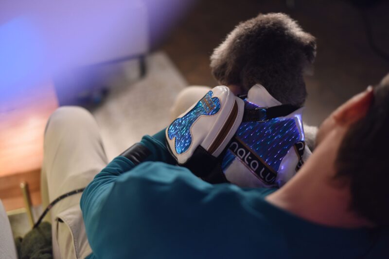 -No risk of electrical shock: all wearable items are powered by low voltage batteries (3.7V/3V). No heat, no Radiation, light weight.